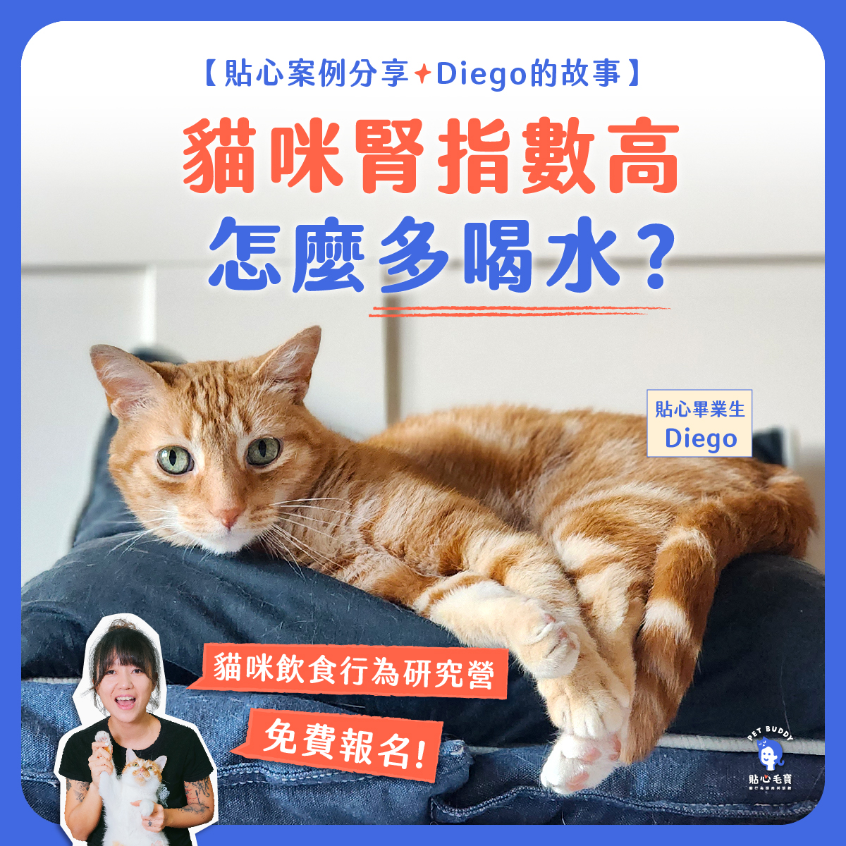 這些年來,無論是一對一深度貓行為諮商調整、或是在「挑食退散」分享技巧,我注意到幾乎每個爸媽最大的恐懼都是:看到貓咪「腎指數上升」,更怕貓咪確診腎臟病。Diego的爸爸Ryan剛找到我的時候就是如此。