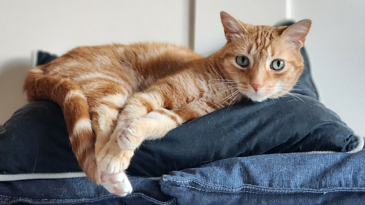 許多腎貓在患病時,會因為攝取低蛋白質飲食流失不少肌肉。小老師邱巴卡也曾為了治療腎病、改吃腎處方飼料,當時他從6.5公斤一路瘦到4.3公斤,等腎指數恢復正常後,我才跟醫生討論、再次轉回高蛋白飲食搭配運動,幫他把肌肉養回來。我們一直努力養肌到2019年,邱巴卡6歲才好不容易回到5.5公斤。
